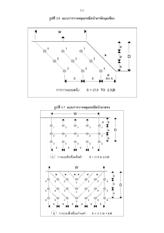 ก วางแบบสีเหลียมผืนผ้า S = (1.5 to 2.0)B