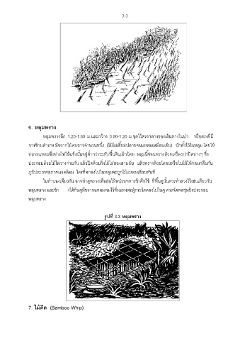 ประกอบดวยไมไผ่วางก่ายกัน แลวปดดวยกงไมไผ่สองสามอัน แลวพรางดวยโคลนหรอใบไมใหกลมกลนกับ