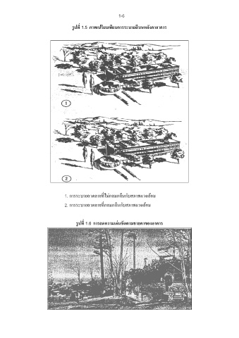 1-6 ี ่ ี รูปที 1.5 ภาพเปรยบเทียบการระบายสบนหลังคาอาคาร ่ ื ี 1. การระบายลวดลายทไม่กลมกลนกับสภาพแวดล้อม ื ี ่ 2. การระบายลวดลายทกลมกลนกับสภาพแวดล้อม ั ่ ่ รูปที 1.6 การลดความเดนชดตามชายคาของอาคาร