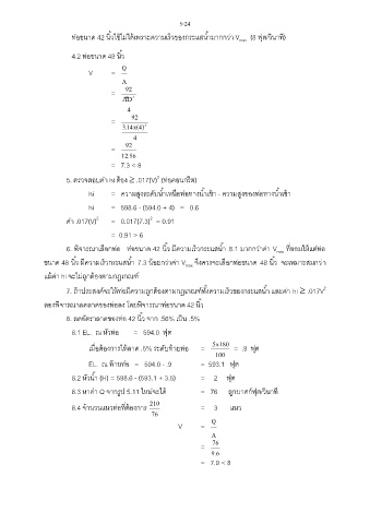 6. พิจารณาเลอกท่อ ท่อขนาด 42 นิ้ว มความเรวกระแสน้า 8.1 มากกว่าค่า V ทยอมใหแต่ท่อ