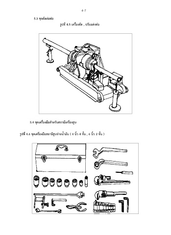4-7 5.3 ชุดตัดต่อท่อ รูปที่ 4.5 เครื่องตัด , ปรับแต่งท่อ 5.4 ชุดเครื่องมือส าหรับสถานีเครื่องสูบ รูปที่ 4.6 ชุดเครื่องมือสถานีสูบจ่ายน้ ามัน ( 4 นิ้ว 4 ขั้น , 6 นิ้ว 2 ขั้น )
