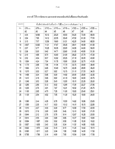 ตารางที่ 7.8 การจัดขนาด และระยะหางของเหล็กเสริมในพนคอนกรีตเสริมเหล็ก