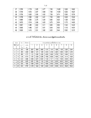 ตารางที่ 7.9 พื้นที่หนาตัด. เสนรอบวงและนํหนักของเหล็กเสริม