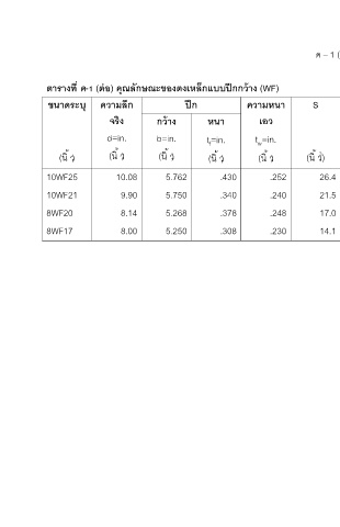 ตารางที ค-1 (ตอ) คุณลักษณะของตงเหล็กแบบปกกวาง (WF) (หมายเหตุ : จาก TM 5-312)