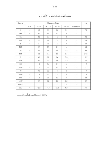 ตารางที 5.1 คาเปอรเซ็นตความถี ของลม