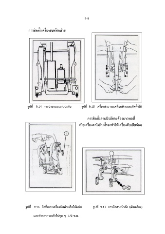 รูปที่ 9.16 ยึดที่เกาะเครื่องกับท้ายเรือให้แน่น รูปที่ 9.17 การยึดสายนิรภัย (ดับเครื่อง)
