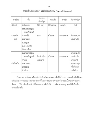 ตารางที่ 1.3 แบบต่าง ๆ ของการข้ามสะพาน (Type of Crossings)