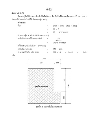 ต้องการปูพนไม้โมเสกปาร์เกต์ไม้สกพนชั้นล่าง คิดเป็นพนที่ดังแสดงในแปลนรูปที่ 6.6 จงหา