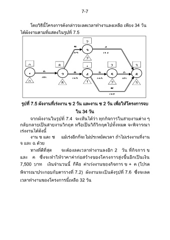 รูปที่ 7.5 ผังงานที่เร่งงาน ข 2 วัน และงาน ช 2 วัน เพื่อให้โครงการจบ