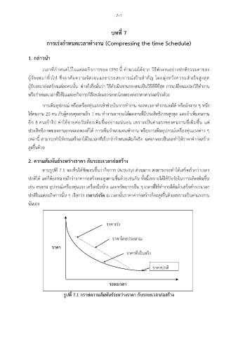 รูปที่ 7.1 กราฟความสัมพันธ์ระหว่างราคา กับระยะเวลาก่อสร้าง