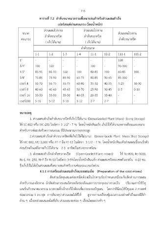 ตารางที่ 7.2 ลำดับขนาดมวลรวมที่เหมาะสมสำหรับส่วนผสมสำเร็จ